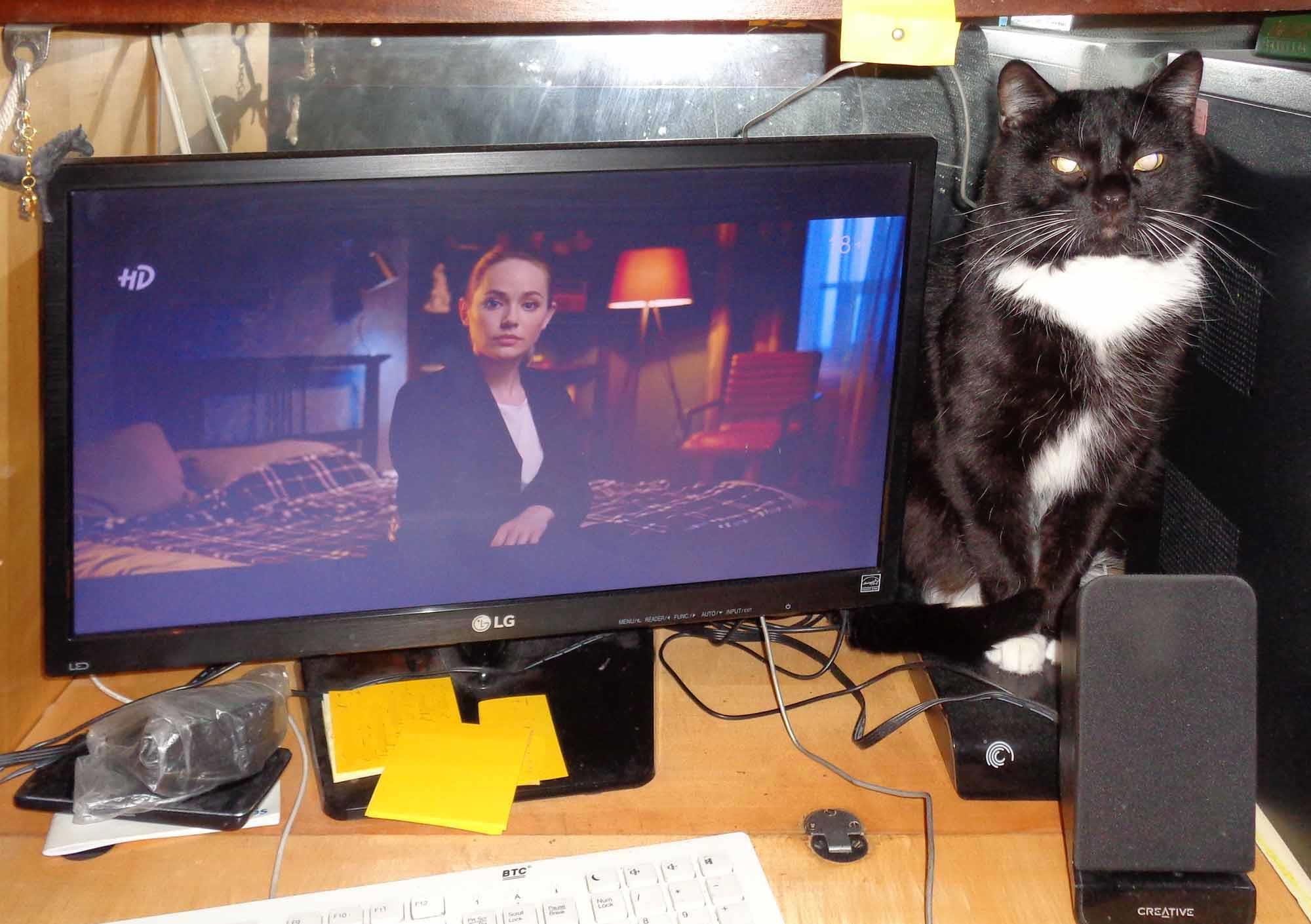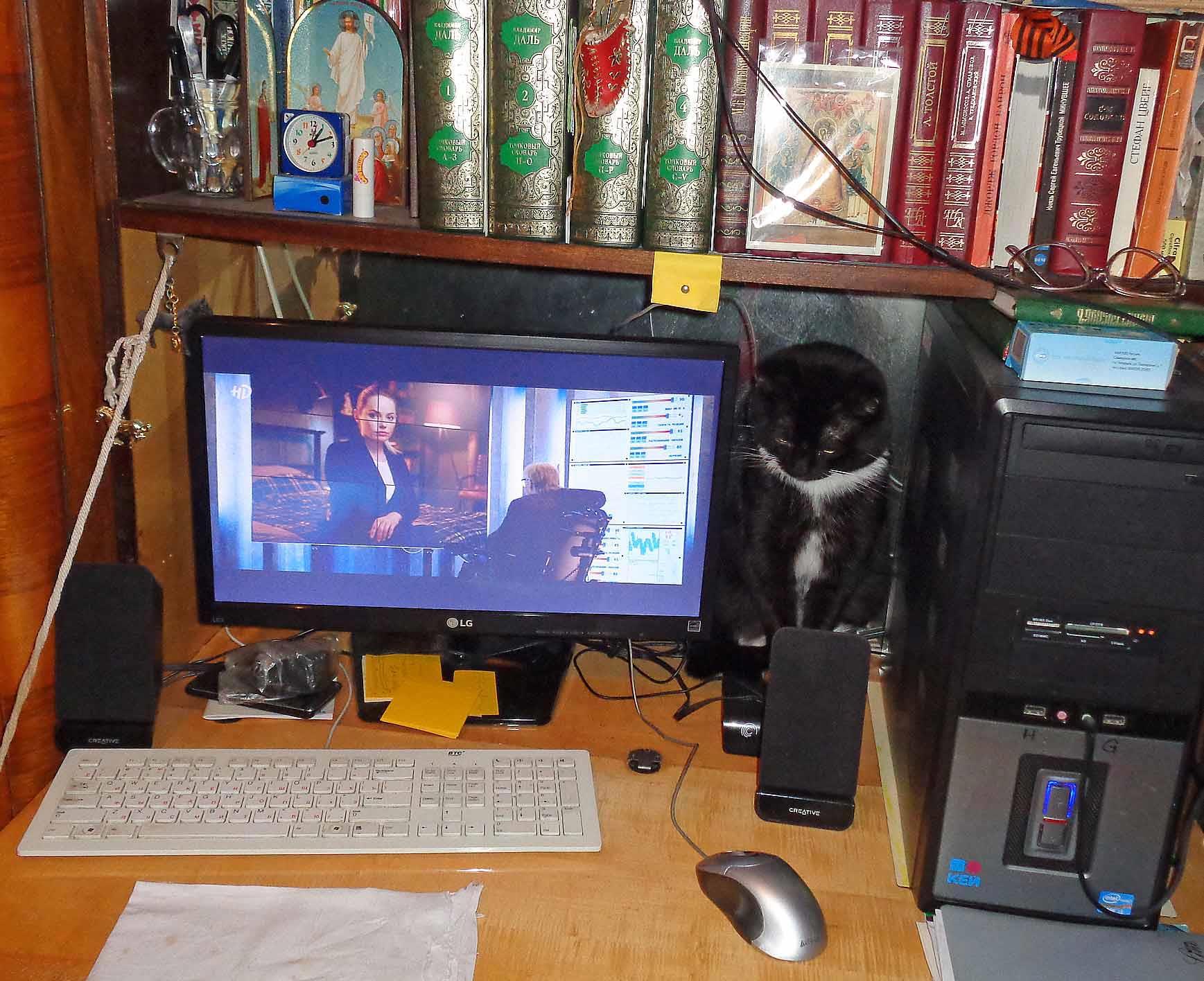 Автор: Маргарита ГуминенкоКот вчера решил, что он - самая лучшая кинозвезда, после чего это продемонстрировал, усевшись на выносной винчестер. Попытки усовестить его, чтобы сам ушёл, успехом не увенчались. Подозреваю, ему не нравилось, что все смотрят кино, а на него не обращают внимания.