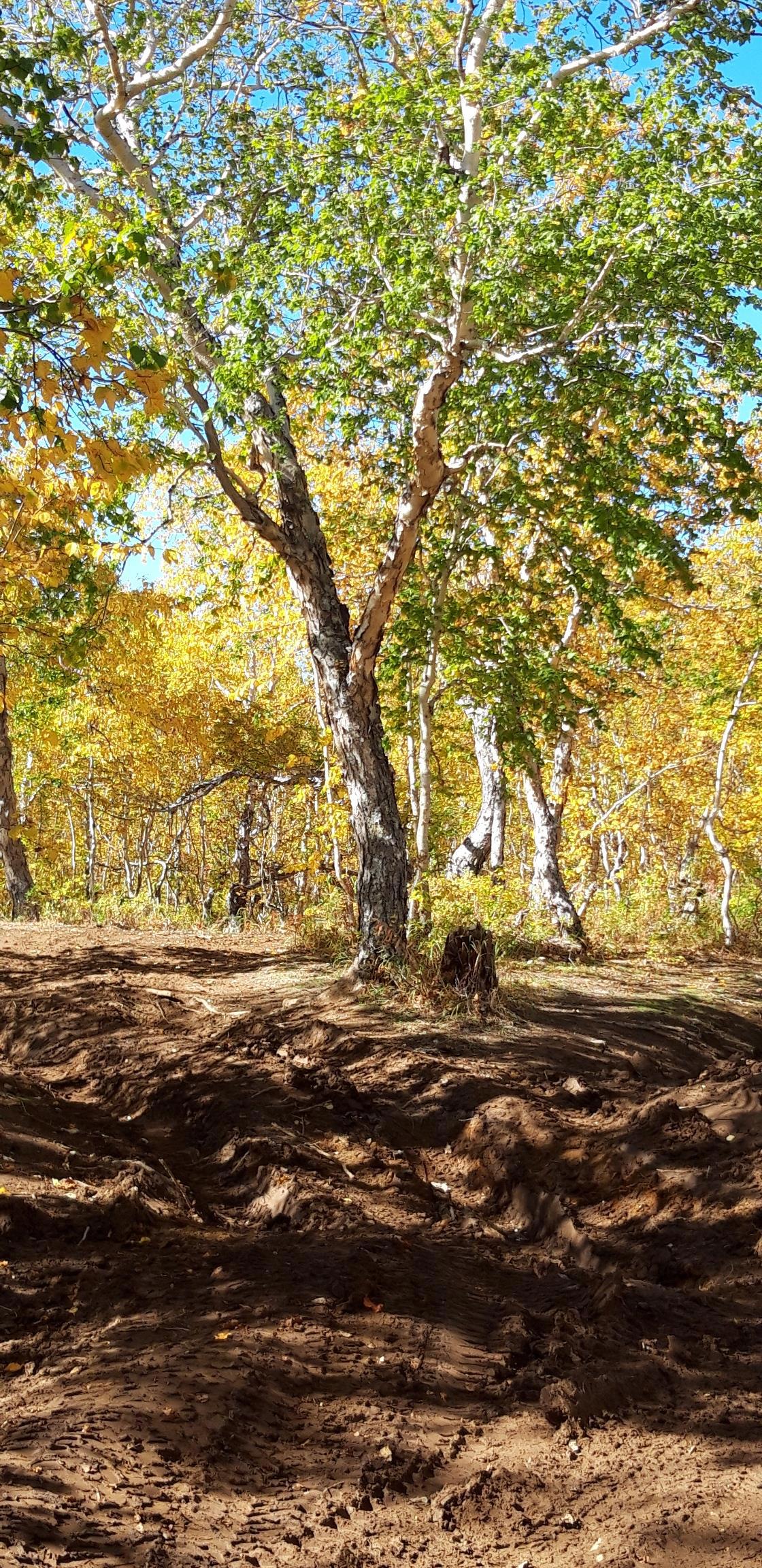 потом по гравийной дороге 10 км, и мы на месте. Нас встретил желто-красный лес, терпко пахнущий перепревшими листьями тополя и березы, воздух был свежий - поэтому несколько километров по лесу бодрячком - чистый кайф: