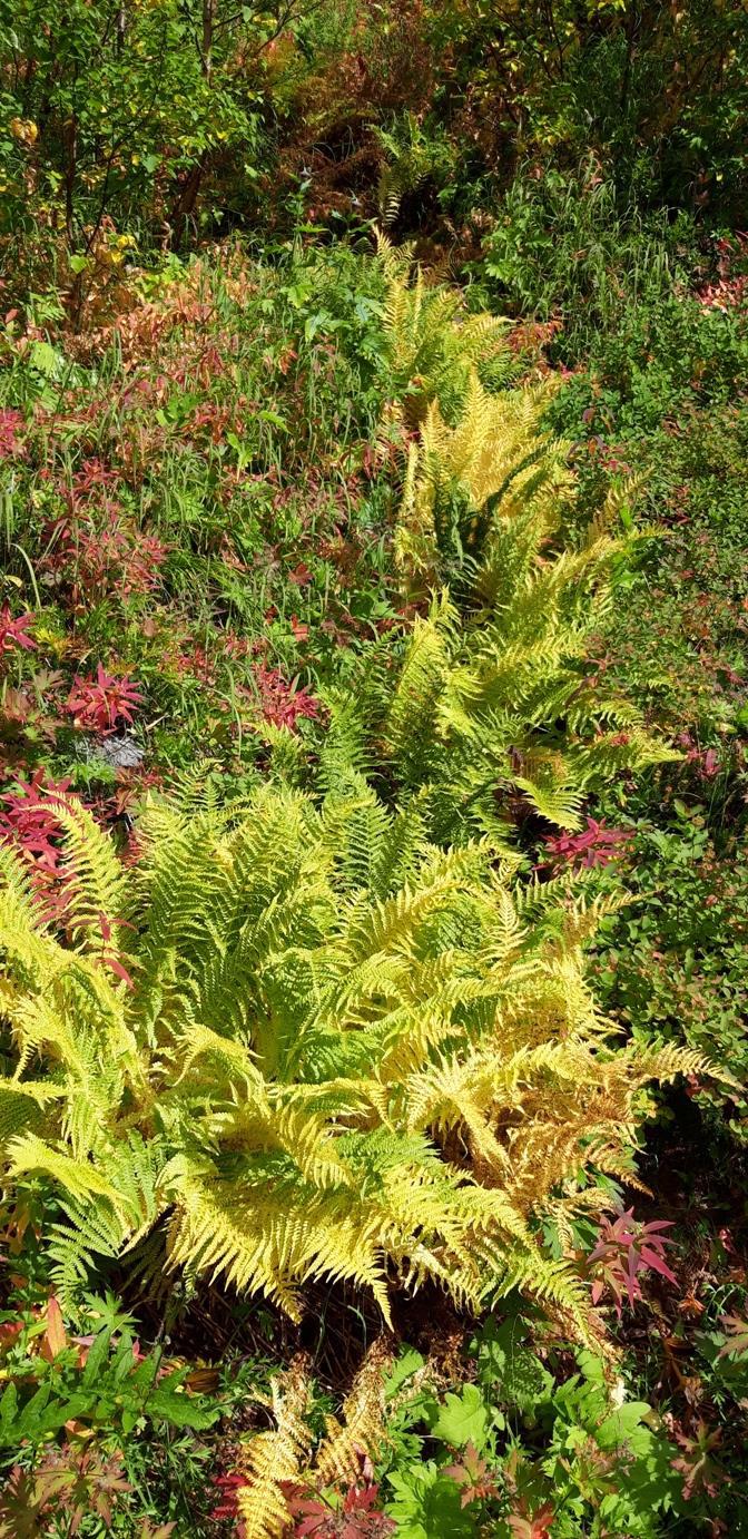 Озеро обходим, находим тропу - вперед и вверх, по пути я фотаю любимые папоротники и камни, оборачиваюсь, чтобы полюбоваться озером, которое уменьшается на фоне разворачивающейся панорамы: