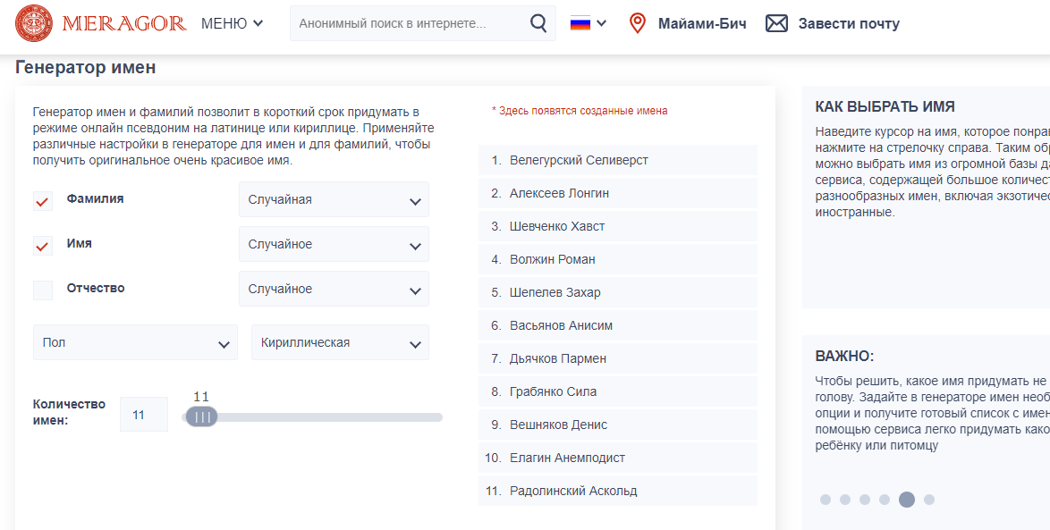 5). Генератор имён и фамилий MERAGOR