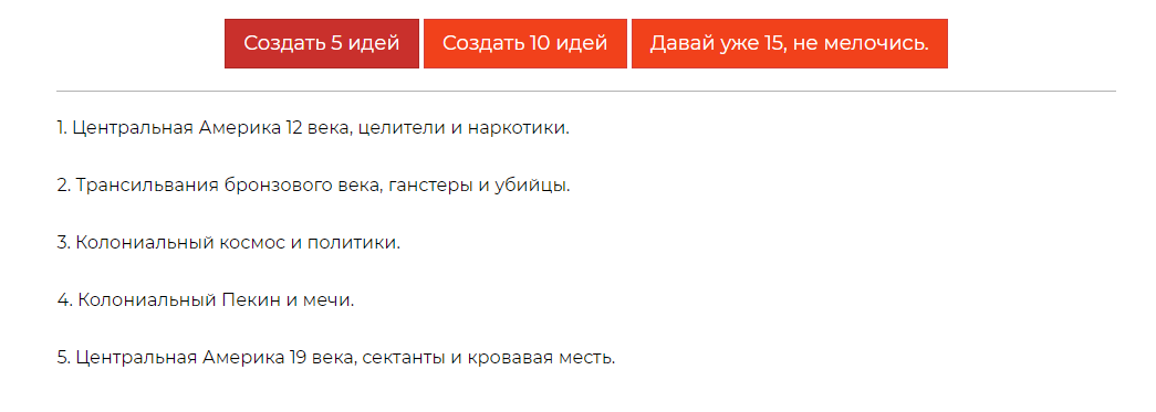 И это только малая часть, подобных генераторов на "Башне" несколько десятков. Особенно забавным мне показался "Генератор идей для мира приключений"