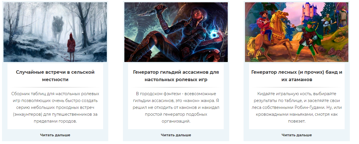Этот сайт наверняка знаком тем, кто играет в настольные или текстовые ролевые игры, а также отыгрывает RP на игровых серверах. Тут можно найти большое количество различных генераторов, их просто море: