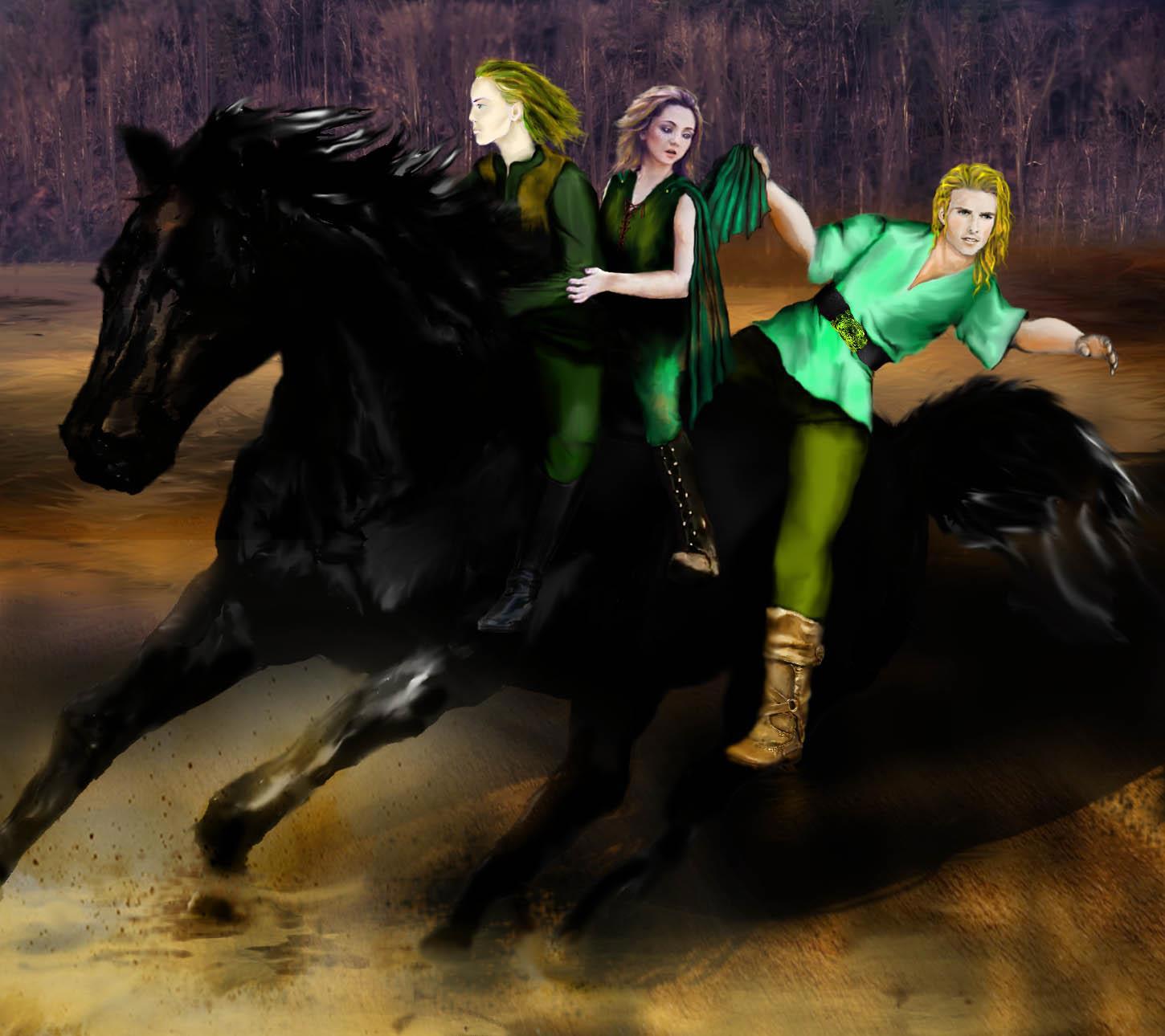 Автор: Lixta Crack (Λιξτα Κρεκ)Вот, не хотела я участвовать в Арт-Прорыве. Рисовать мне на на чем, краски кончились, планшет давно потерян, комп глючит. И тут я увидела заявку от Бранвены Ллирской, а там такая книжка хорошая, так она мне понравилась, что я не устояла. И при помощи мышки, мигающего монитора, карандаша и телефона взялась я за рисование офигеть какой замороченной сцены. Четыре персонажа и все в движении, и еще непонятно как все элементы расположить, чтоб на одном рисунке все уместилось. Вообще, пока рисовала, меня не покидало желание сделать видеоролик. Ну, чтоб уж все точно было на месте. А так получилось то, что получилось. Надеюсь, я сильно не накосячила.