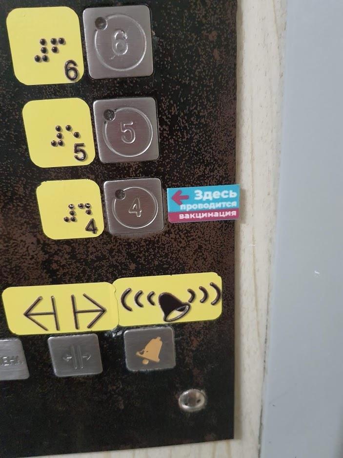 Скидываю замок, захожу. Надеваю бахилы, натягиваю маску. Куда идти сразу понятно: везде указатели "на прививку от ковида - туда". Даже в лифте кнопочку пометили, куда ехать. Долго брожу по этажу по указателям (размышляю, что архитектор этого здания был Минотавром - в лабиринте коридоров легко заблудиться. Я-то пришел и ушел, а врачам здесь каждый день с компасом ходить).