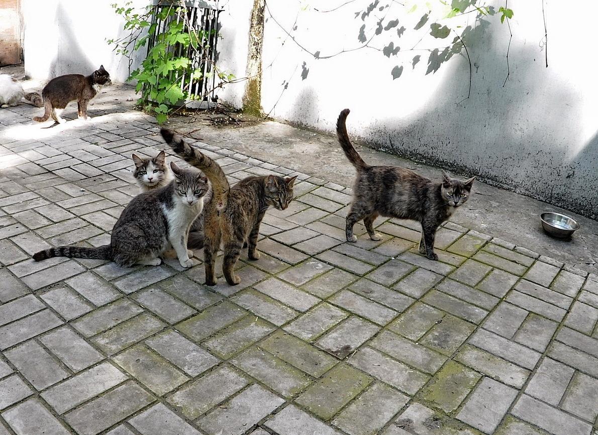 Наконец подтянулись и соседские коты. Наглые. Гонишь их, а они удивляются: как так, тут же кормят.
