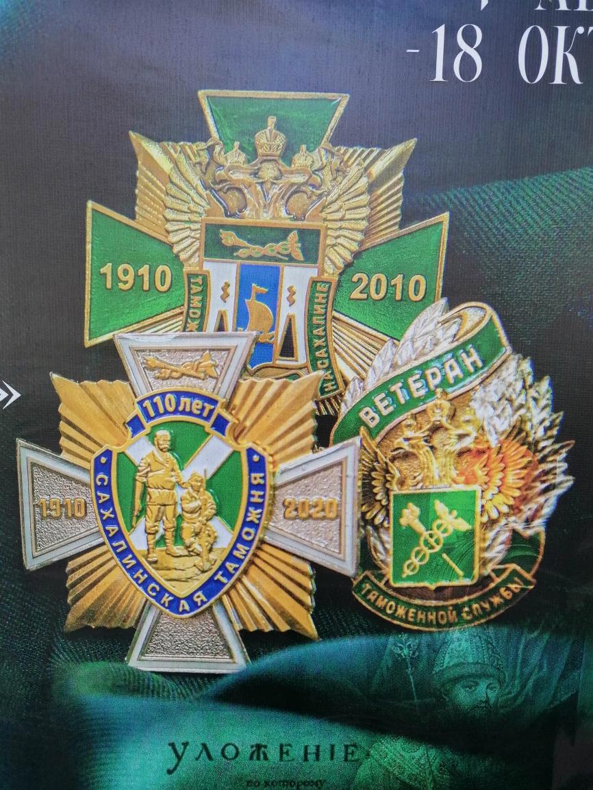 А теперь присмотримся к орденам... точнее к тому, что на переднем плане, на котором надпись "110 лет Сахалинская таможня"
