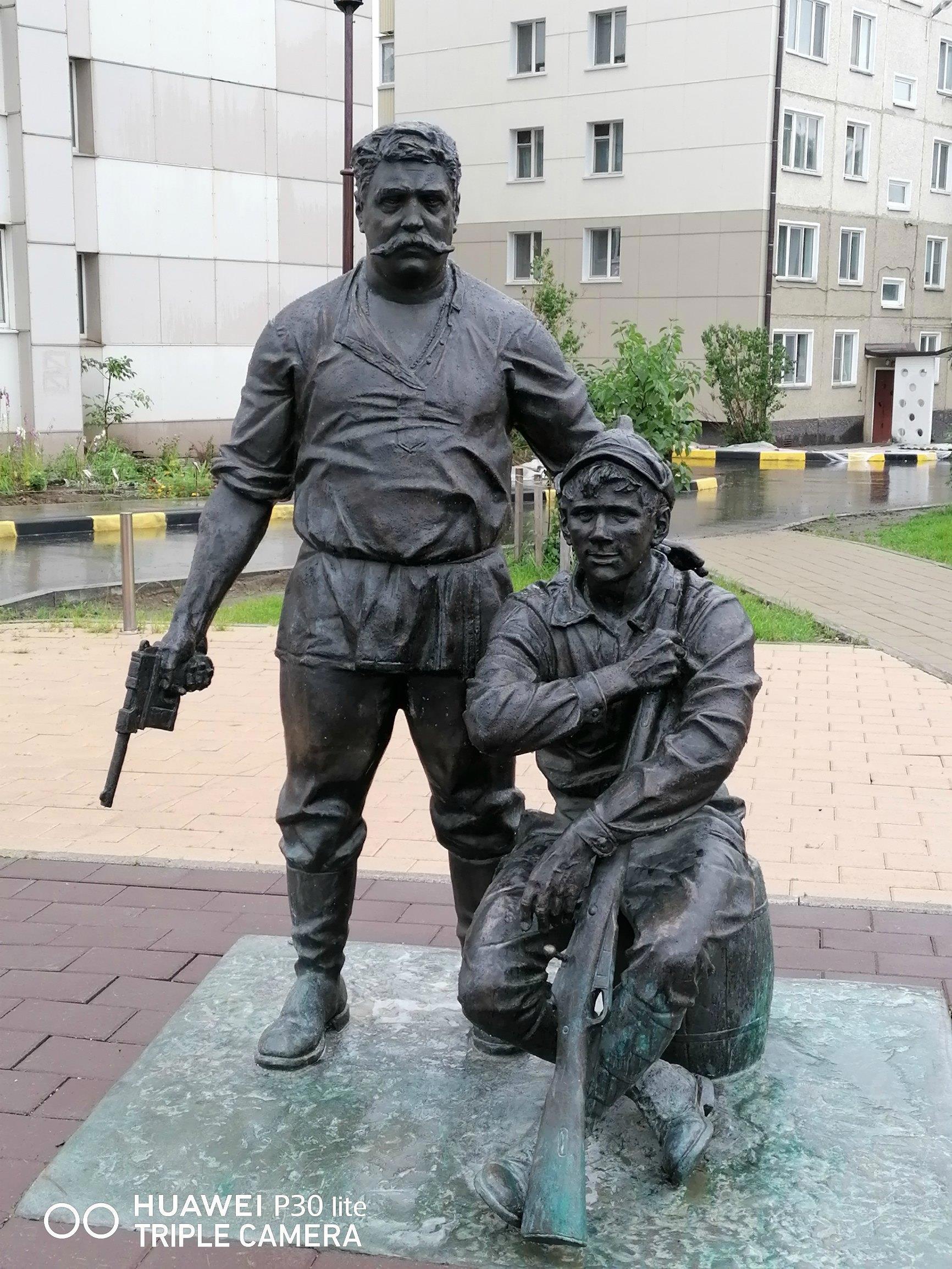 Петруха и Павел Верещагин из любимого многими фильма о трудной работе таможни - "Белое солнце пустыни". Эта скульптура стоит в сквере на одной из центральных улиц города. Замечательная скульптура, в полный рост, между прочим)