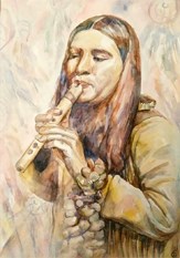 4. Суханова Евгения - Сразу заметно художник не ленивый человек... столько прорисовано мелких деталей, что взгляд невольно останавливается. И жизнь в рисунке бьет ключом и музыка из дудочки сама льется.