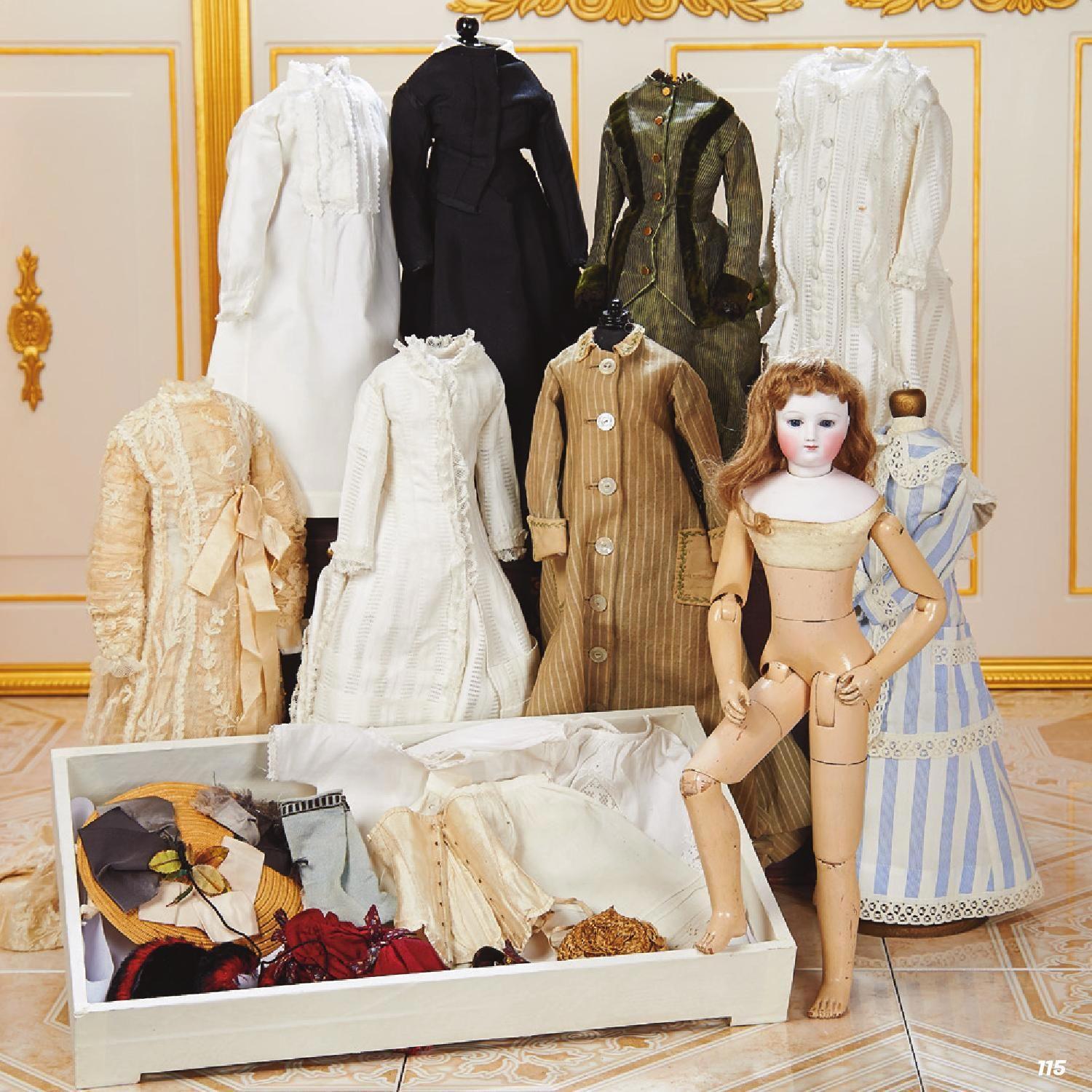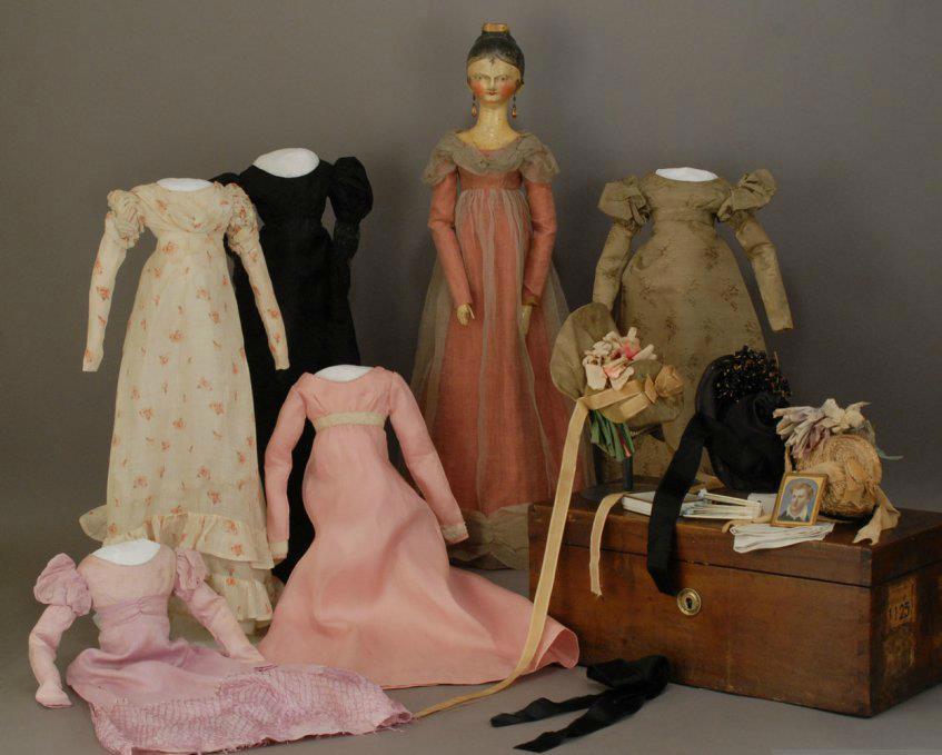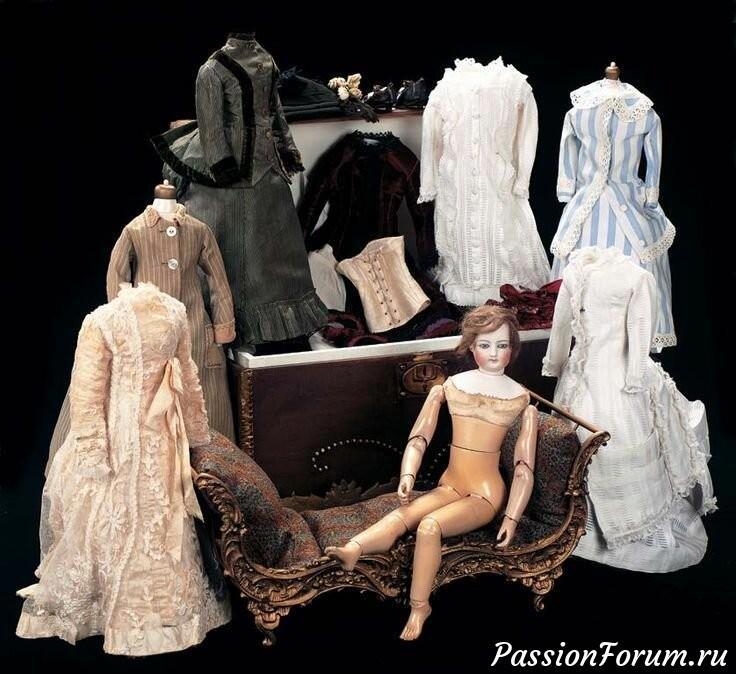 В их гардероб входили все элементы одежды, необходимые прекрасной даме, — белье, корсет, шелковые чулки, элегантные башмачки и, конечно, платье. Дополняли его аксессуары: украшения, головные уборы, зонтики — точные копии модных образцов.