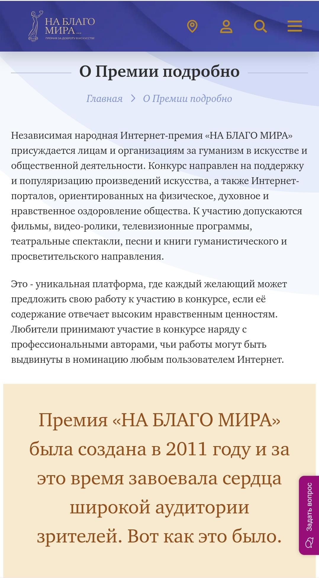 «Прошу Вас оценить мою работу и работы авторов в других номинациях на сайте Премии nablagomira.ru».