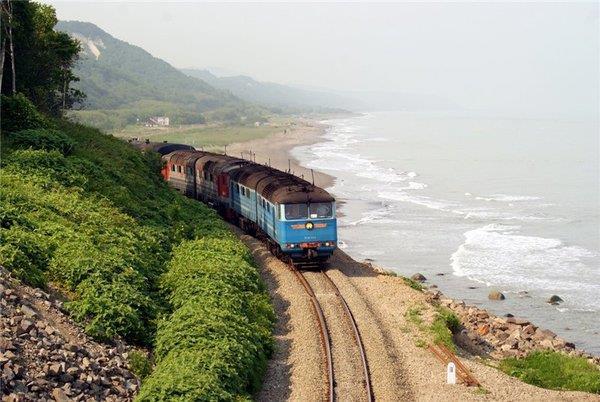 А ведь у нас тоже есть такие места, от которых захватывает дух, и вообще смотреть за окошко не хочется, лишь бы проехать, да побыстрее... И такое место есть на Сахалине! Начну не с самого страшного. Хотя это как посмотреть, особенно во время непогоды или ещё хуже - шторма... Но для начала надо всё же показать где находится удивительная железнодорожная линия)