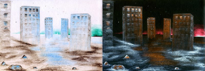 Вместо ручек можно рисовать акварельными карандашами, а потом для пущей реалистичности размазывать рисунок водой. Можно нарисовать канву картины фломастерами и доработать ручкой — тоже прикольно получается. На графическом планшете с полученным сканом можно делать всё, что угодно — от размазывания мастихином до искривления линий. Можно вообще сделать всё от начала до конца на планшете, но это будет уже немножко другой стиль. Ручкой легче добиться фотографической точности, чем карандашом. На иллюстрации к 3 части инвертированный карандашный рисунок.
