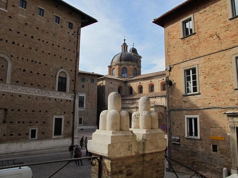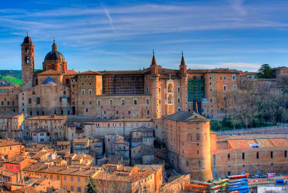 «Урбино был выстроен из бледно-кремового камня, но на восходе и закате солнце обливало его бледно-розовым сиянием».