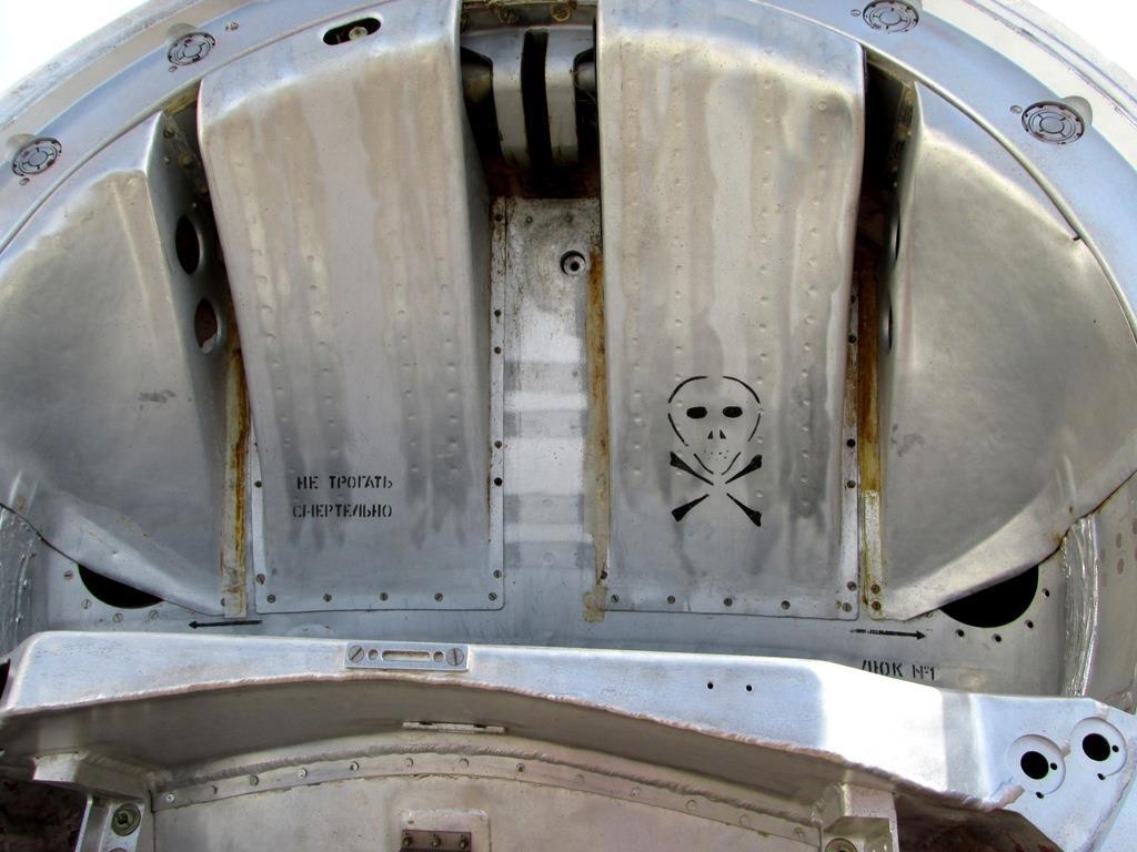 Ниже - вид на крышку спускаемой капсулы (на месте посадки в Саратовско области выставлена копия):