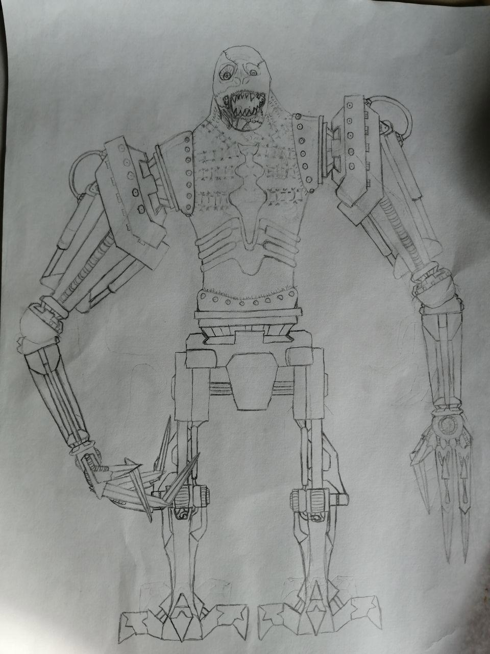 Продолжая наполнять бэк "Стального Странника", с прицелом на то, чтобы потом сделать из этого клевые и качественные иллюстрации (и замахнуться на лавры Вахи, че уж тут мелочиться), накидал скетч на Свежевателя.