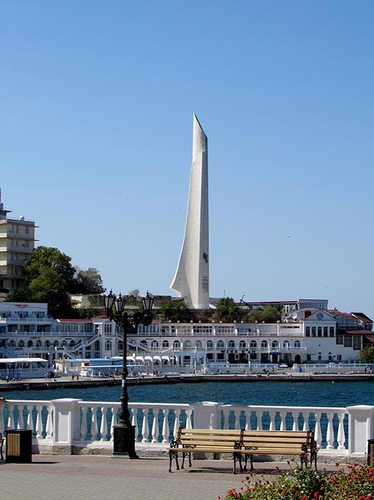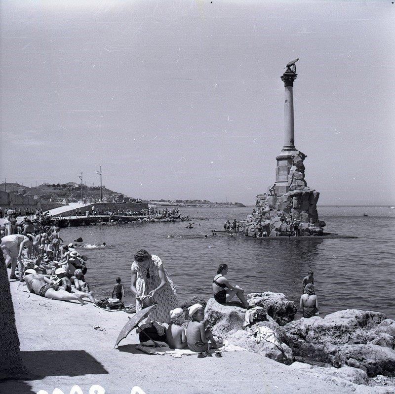 Раньше именно здесь в 50-х годах был городской пляж. Потом- перенесли пляж на Хрусталку, а тут установили памятник-Героям Севастопольской эскадры.