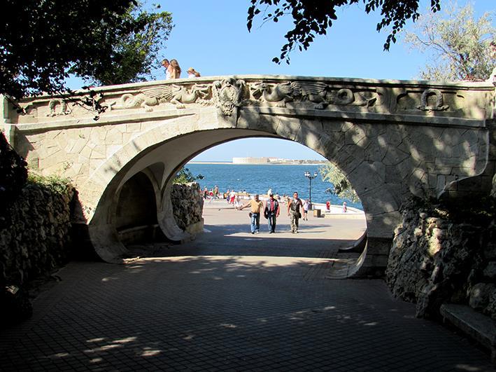 А раньше здесь был пляж- 50-60 годы прошлого века. И даже- танцевальная площадка вокруг Памятника Затопленным кораблям.