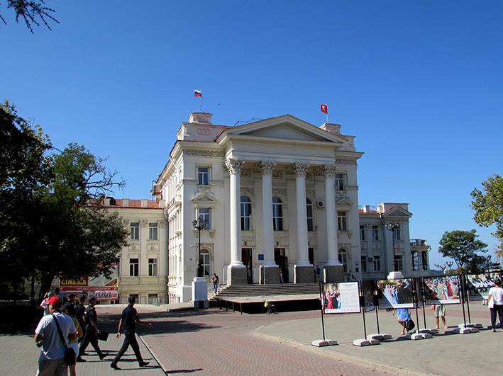 Матросский клуб- с башни каждый час играет мелодия "Легендарный Севастополь"