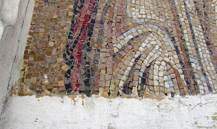 Надпись закрасили и сделали во фризах картины из смальты. НО! Надпись- бережно перенесли и прикрепили рядом- правильный подход.