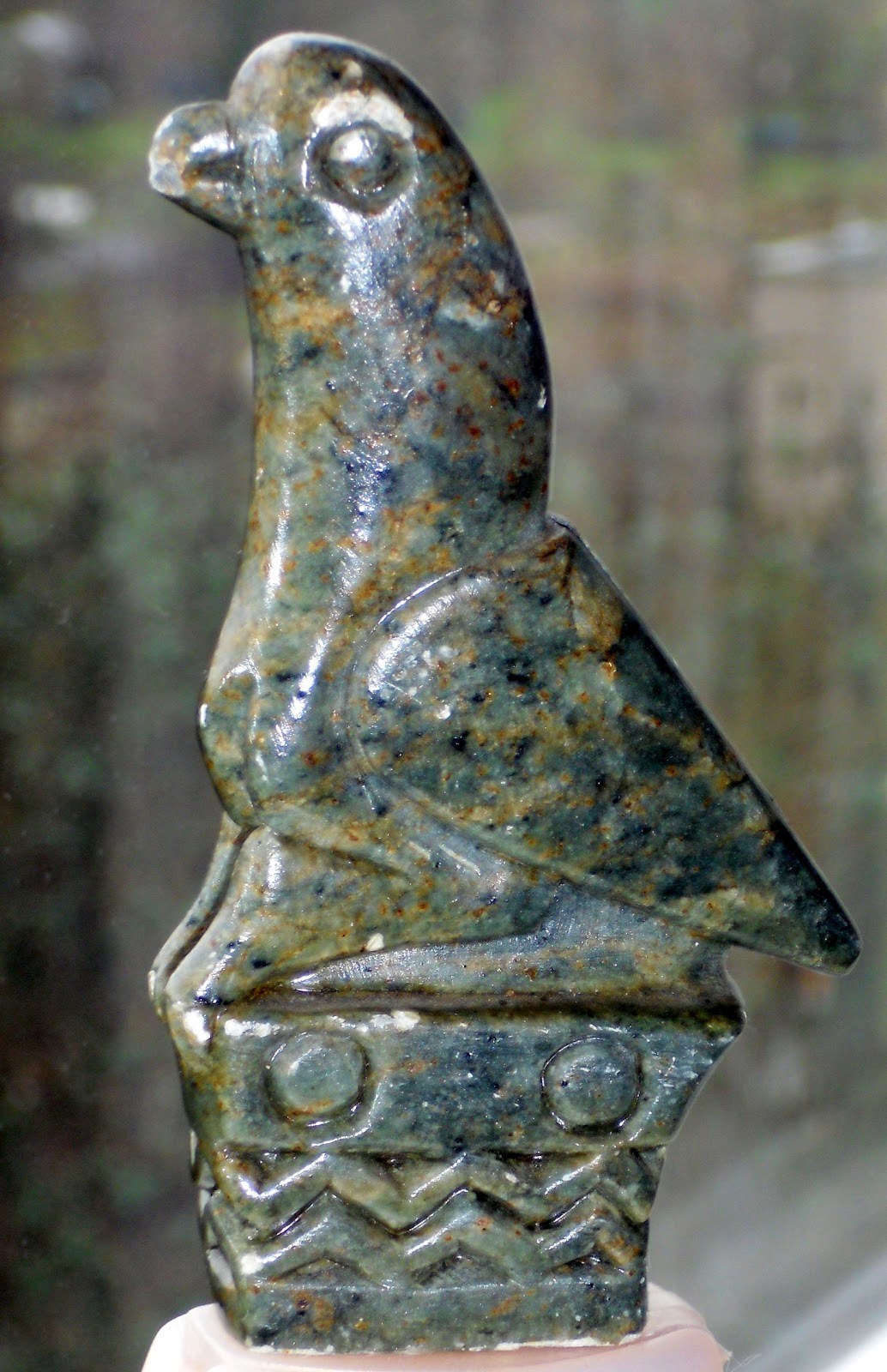 Одни говорят, что это изображение сокола и пытаются связывать этих птичек с египетским Гором, другие говорят, что это – степная выпь и тоже строят догадки, но уже другие. Есть и такие, кто поминает культы цивилизаций Центральной Америки. Ну я тоже не хуже других… мне кажется, что это не соколы и уж точно не выпь, а птица-секретарь. Вот! И она не с кем не связана, а вообще «сама по себе» птичка... а может это вообще попугай?