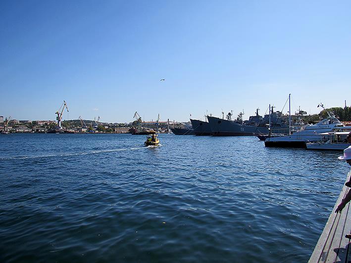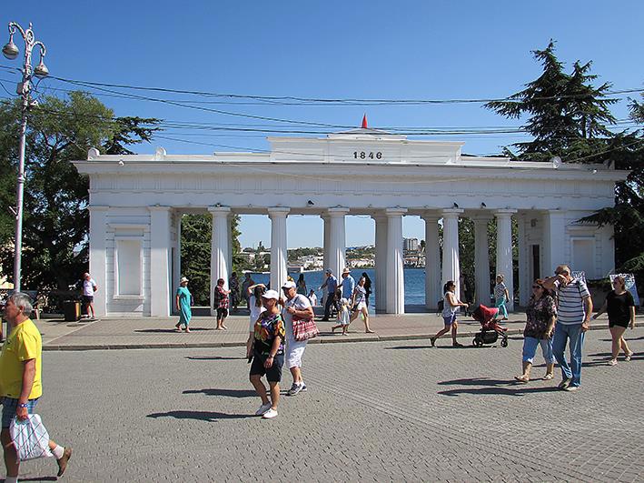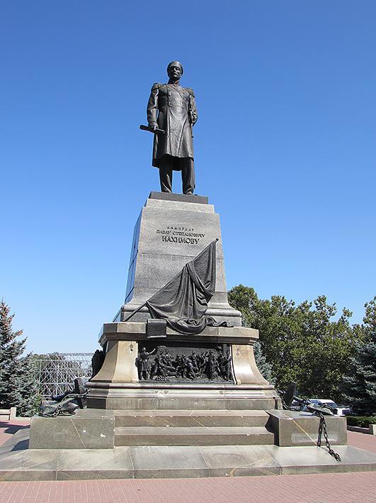 Иду к памятнику Нахимову. Раньше, на его месте стоял до войны памятник Ленину, который перенесли к Усыпальнице четырёх Адмиралов.Позади виднеется колоннада Графской пристани. Напротив Нахимова - Пост №1 (почётный караул несли только школьные отличники и комсомольцы- у них была форма и оружие -автоматы АК-47 (возможно муляжи).