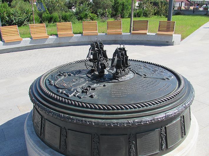 Рядом - маленький бассейн с фонтаном, рыбками и памятником юнги с моделью корабля. В Севастополе все мальчишки строили модельки кораблей- разной сложности и вида- так что этот памятник- о них и их детстве.