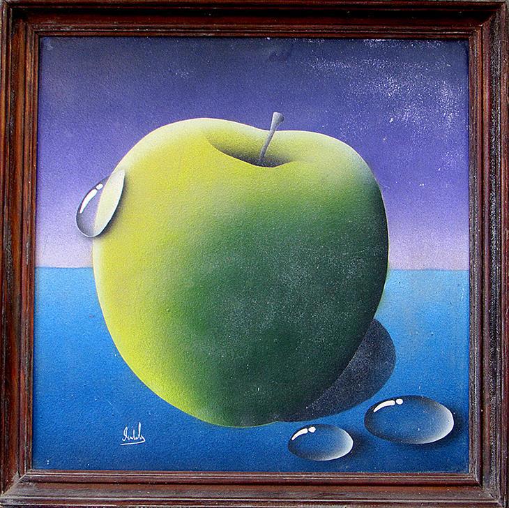 Это - аэрография. У меня было два варианта такой картины- с красным и зелёным яблоком.