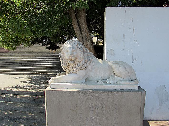 И вот, что я недавно узнал- вход на лестницу охраняют два льва. Этих мраморных львов перенесли от Памятника Казарскому сюда. Оттуда забрали- сюда установили. Видимо львов не хватает... А может просто хотели создать торжественность момента- когда с корабля сходишь и попадаешь в Город, достойный поклонения (так переводится "Севастополь").
