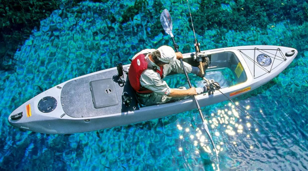 Иногда с первого взгляда кажется, что какая-то умная мысль в таких вещах присутствует. Вот, например, специальная лодка для рыболова-любителя с прозрачной вставкой в днище:
