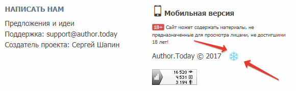 Автор: Сергей ШапинПри желании, вы можете включить новогоднюю тему оформления, нажав на снежинку в правом нижнем углу, рядом с надписью "Author.Today