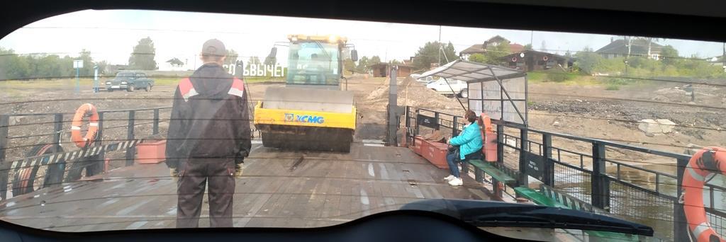 Самый страшный момент путешествия: на маленький паром с двумя машинами въезжает тяжеленный каток. Мы чувствовали себя снарядом в катапульте, которая при перевороте отправит нас обратно в Сольвыгодск: