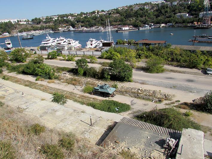 Шёл по дороге вниз, к вокзалу и снимал окресности. Это подводная лодка проекта 633, с экспериментальным размещением ракет в носу лодки (корабль- корабль).