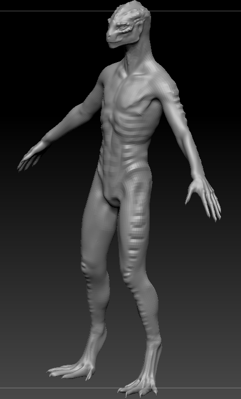 Это всего лишь скетчи, подмалевки модели. До конца тут еще много работы - создание развертки для текстурных карт, создание высокополигональной версии для запекания нормалей (саму хайполину рендерить - мой комп не потянет, он итак полудохлый), потом создать скелет для позинга и анимации и настроить его так, чтобы ничего не ломалось и не кривилось...