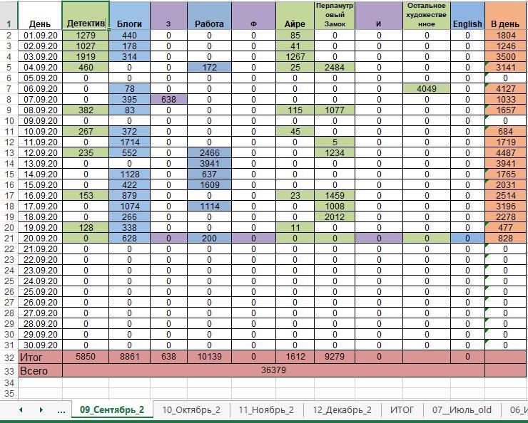 Табличка прилагается. Нас интересуют только зелёные колонки, это то, что планируется написать и опубликовать здесь.