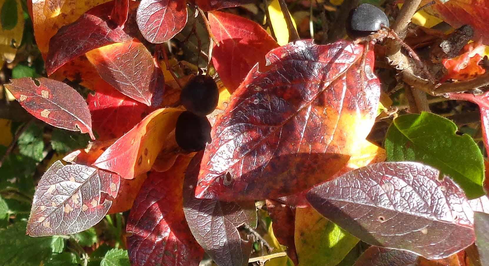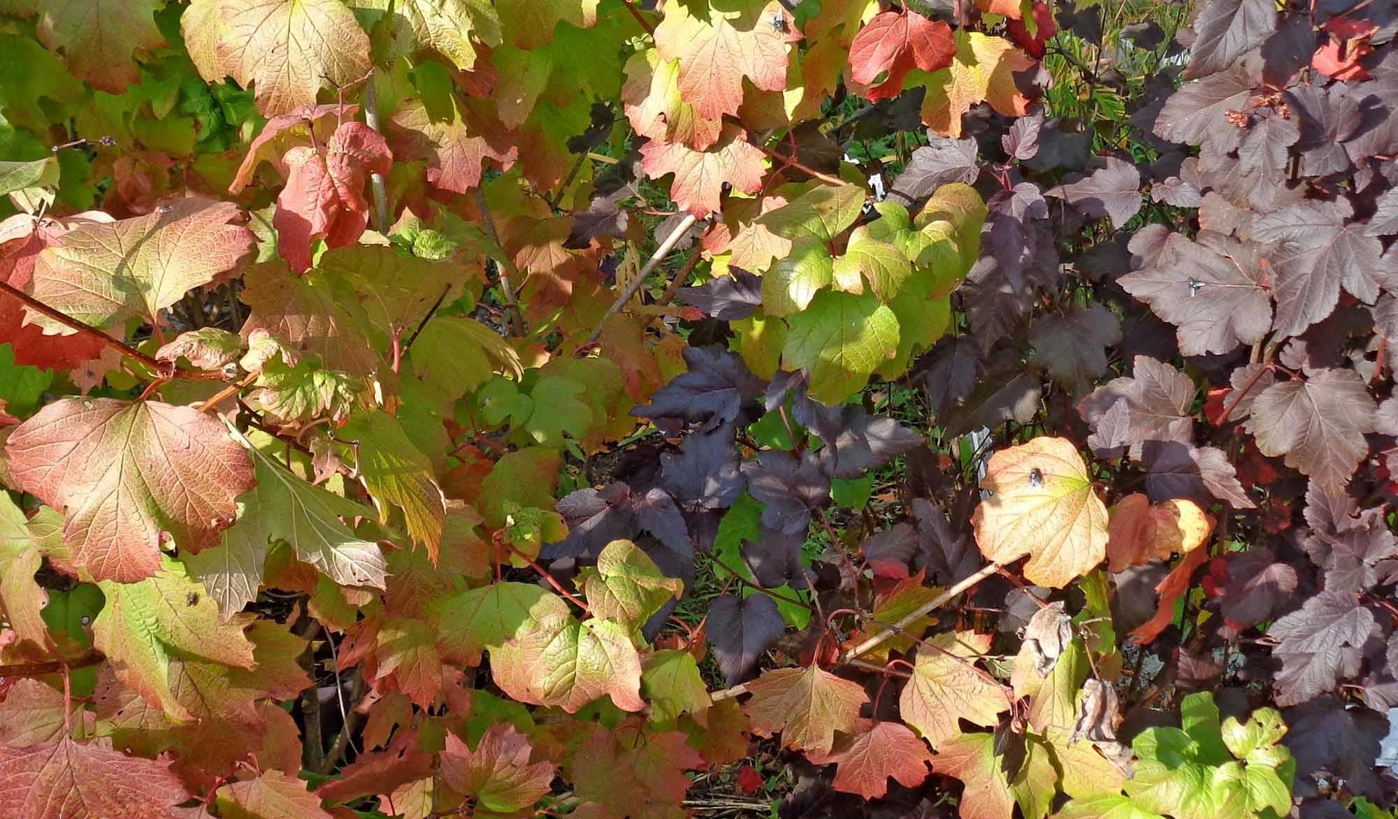 Калина и пузыреплодник соперничают в буйности красок: