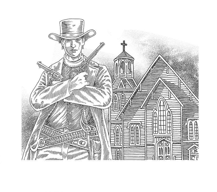 На счастье Пастора, помощник шерифа отошел к своему отряду. Слов мисс Шиммер он не слышит, да и никто не слышит, кроме преподобного. Один из всадников кажется Рут знакомым: здоровенный медведь с кучерявой бородой и вьющимися кудрями до плеч, в армейской шинели и шапке-конфедератке. Жилет грозит лопнуть под напором могучего брюха, шейный платок мог бы послужить парусом рыбачьей лодке. Рут пытается вспомнить, в каком лесу ей довелось встречать медведя, не может и бросает это пустое занятие.