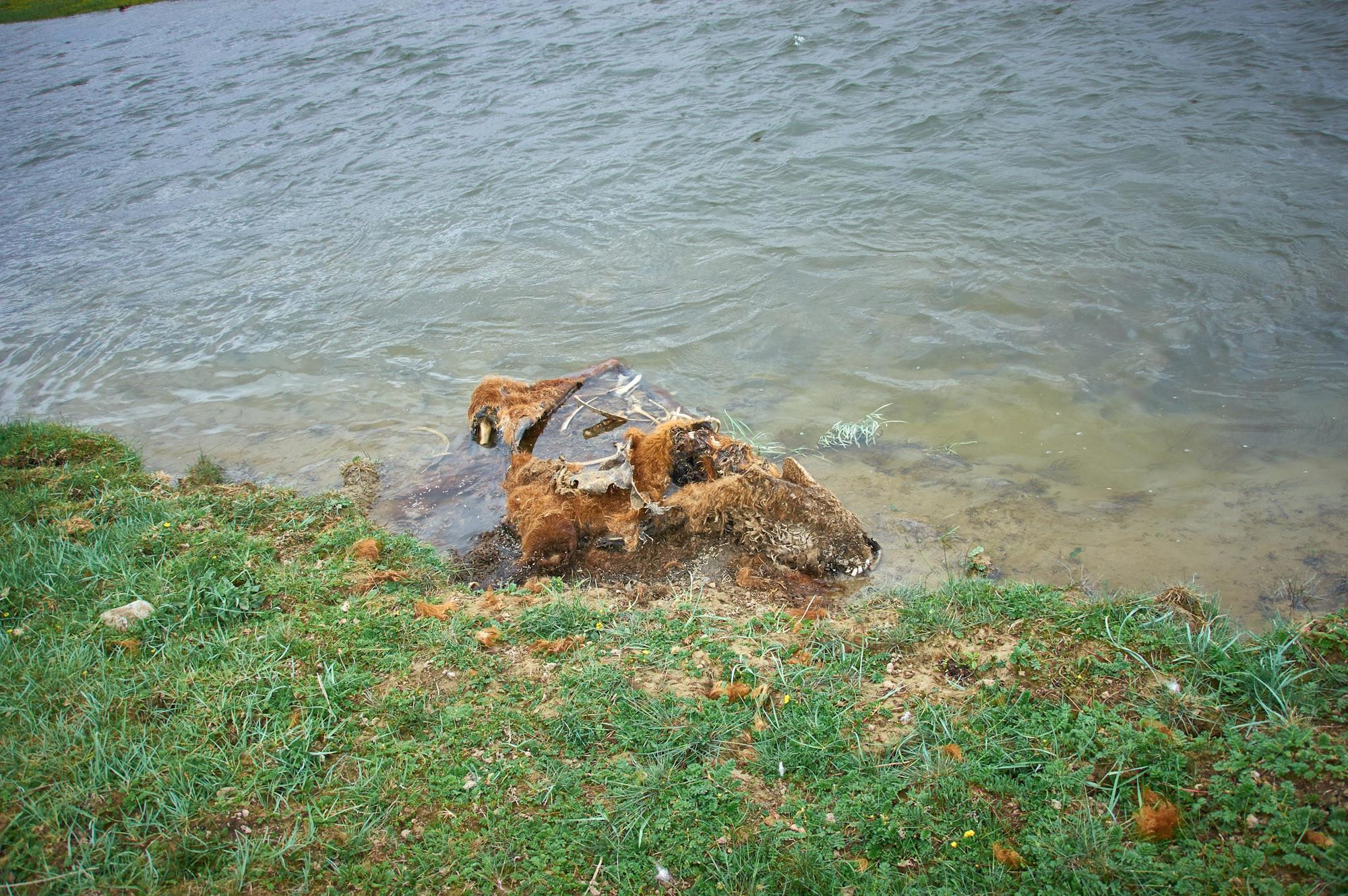 По плану у нас сегодня осмотр каньона Тайшир, но уже поздно, разбиваем лагерь около реки Завхан на удобном каменистом пятачке. Получается даже ополоснуться в не очень теплой воде быстрой речушки. Сухой воздух быстро высушивает волосы, и здесь уже не так холодно. На берегу замечаю тушу падшего животного. Затем мы не раз наблюдали подобных, как и многочисленные черепа. Суровая страна и суровые нравы!