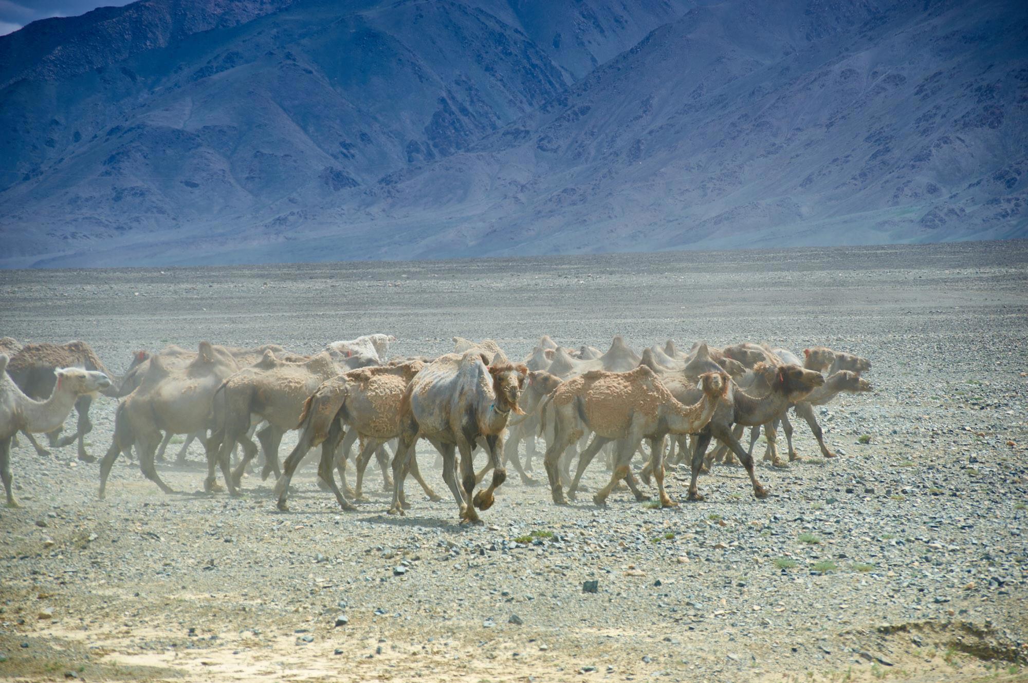 Вскоре автобан привел нас в самую настоящую пустыню, извиняюсь сразу за название, Хуйцин Гоби. Гоби, Гови и обозначает в Монголию пустыню. У нас широко известная только одна из них. Прямо на камнях паслись толпы верблюдов, на трассе то и дело возникали миражи, стало жарко. Жар Гоби буквально уносит тебя с дороги))