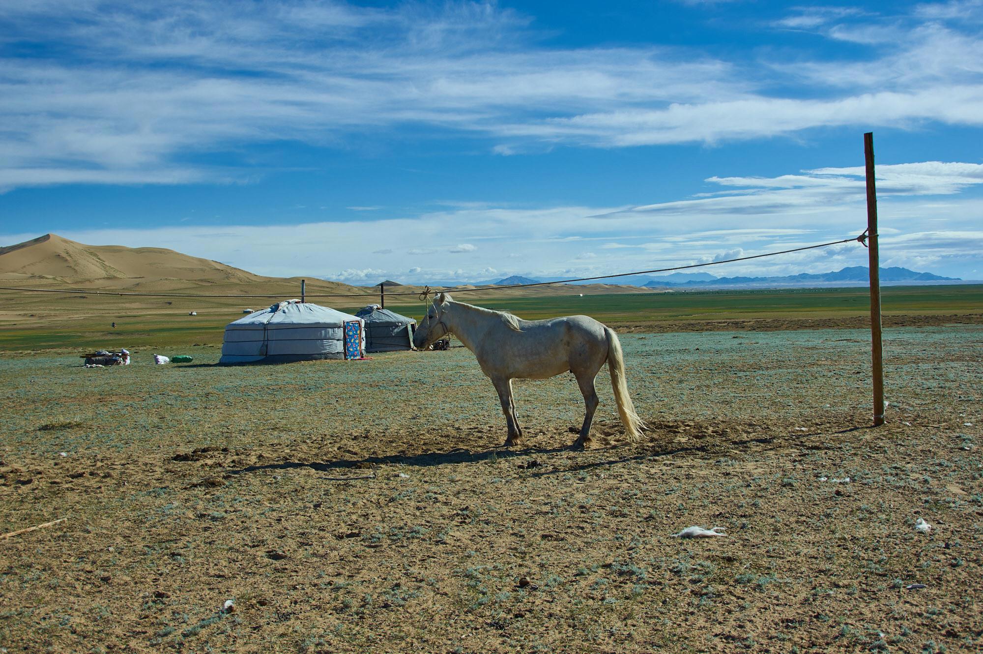 Но не сказать, что мы отчуждены совсем от внешнего мира. С интересом наблюдаем за бытом кочевников. Они с интересом наблюдает за нами. При каждом гэрэ установлена коновязь, но скот пасут на мотоциклах, видимо, так удобней. Переносные жилища кочевников снабжены современными солнечными батареями и спутниковыми антеннами. 21 век на дворе!