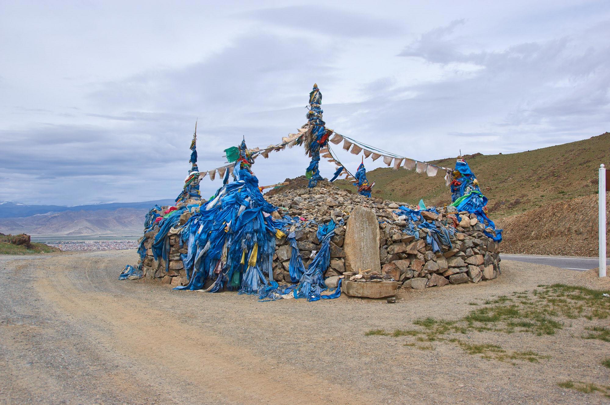 Сегодня мы должны выдвинуться в сторону главной цели нашего путешествия, огромной гряды песчаных барханов, называемых Монгол-Элс. Элс и есть по-монгольски пески. Почти вся дорога проходит по уже асфальтированному автобану. Проехав город Ховд, взбираемся на небольшой перевал и останавливаемся около Обо.