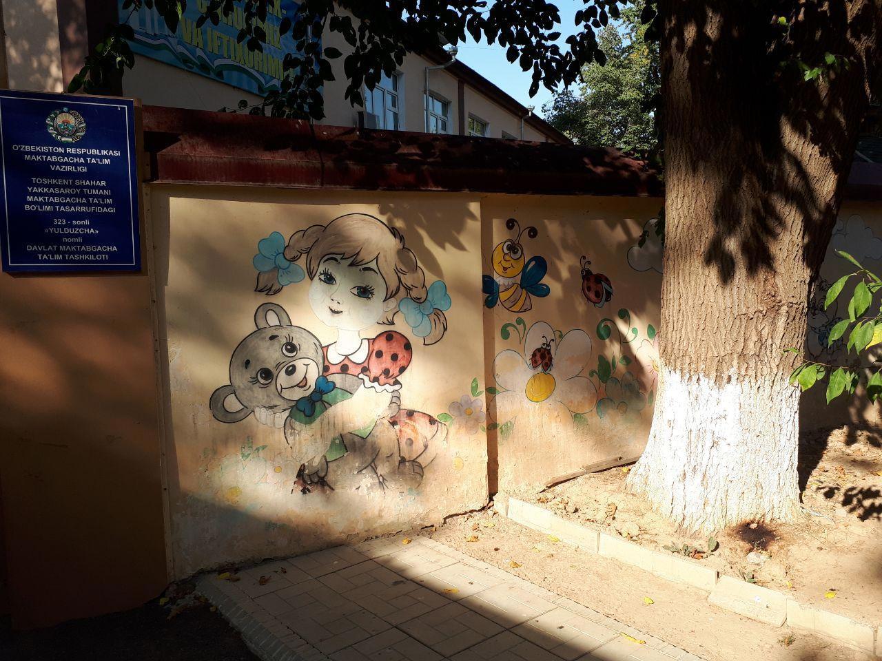 И полнейшее ми-ми-ми: роспись на заборе детского сада, которая покорила меня тем, что и девочка, и котёнок на одно лицо. А что? Так и надо! Мы одной крови.