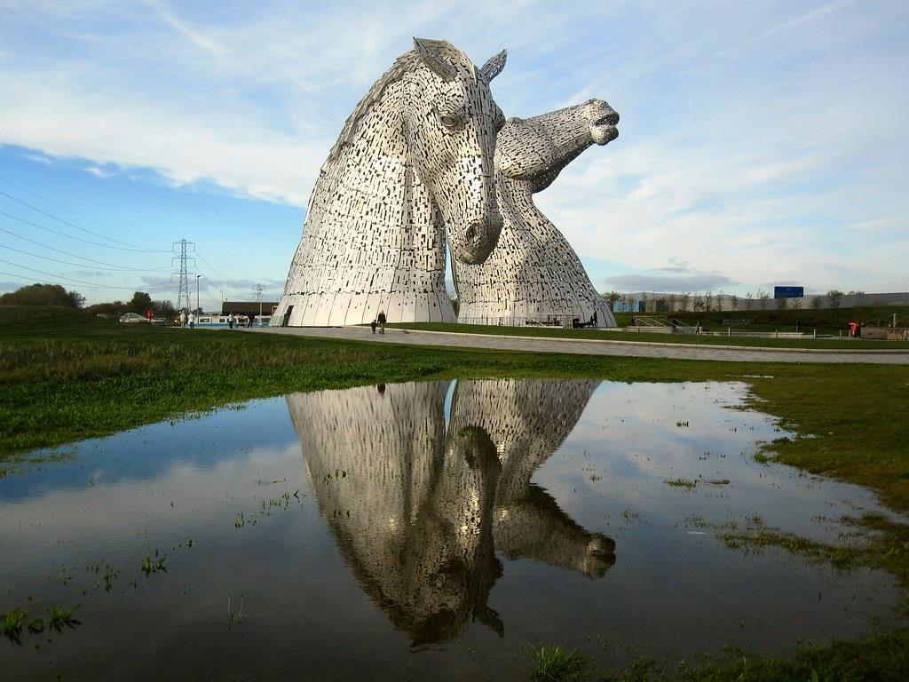 Знаменитая тридцатиметровая стальная статуя келпи, установленная в шотландском округе Фолкерк