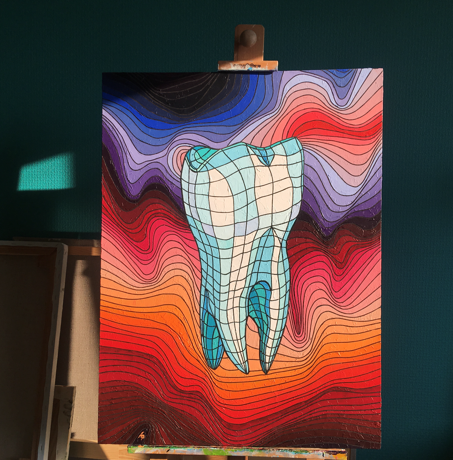 А пока слегка мухлюю)) Вот бонус: 2 мои зубастые картины, которые висят у брата в клинике )))