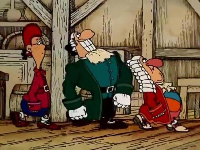"Случайно" заводит их в кабак, который держит Джон Сильвер.