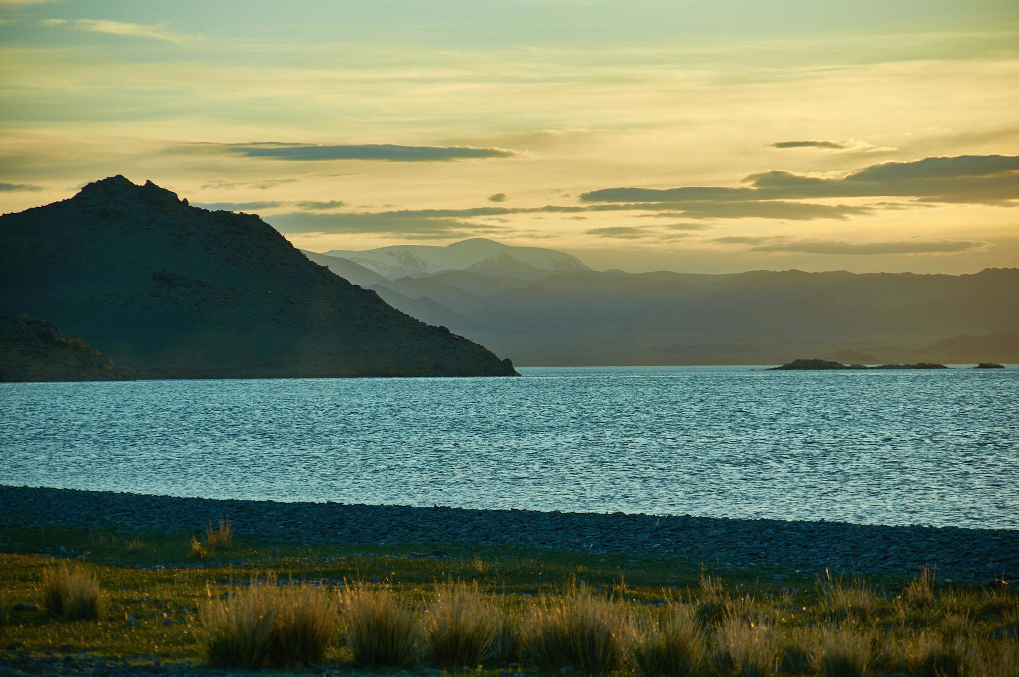 Наконец, после десятичасового пути от Хяргаза доезжаем до промежуточной точки на озера Уурэг-Нуур. Оно со всех сторон стиснуто горами, берег плоский из гальки. Под крики чаек наблюдаем закат. К нам в гости по очереди подходят монголы из ближайшего стойбища.