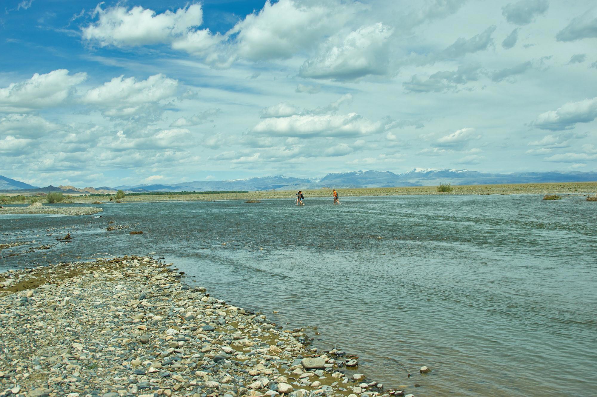 Вскоре понимаю, что тапки и палки остались в машине. Но делать нечего, только вперед. Только хардкор! Вода ледяная, камни больно впиваются в подошвы, на самом широком месте тебя запросто может снести течением. Вспоминаю свой прошлый туристический опыт, иду чуть наискось течению, упираясь ногами. Монгольский гид делает ошибку и идет прямо, внезапно его срывает течением и несет к озеру. Нам только утопленника для полной радости не хватало! Но молодец, смог выбраться. Пусть и по горлом мокрый, зато какой радостный. Монголы они временами как дети.