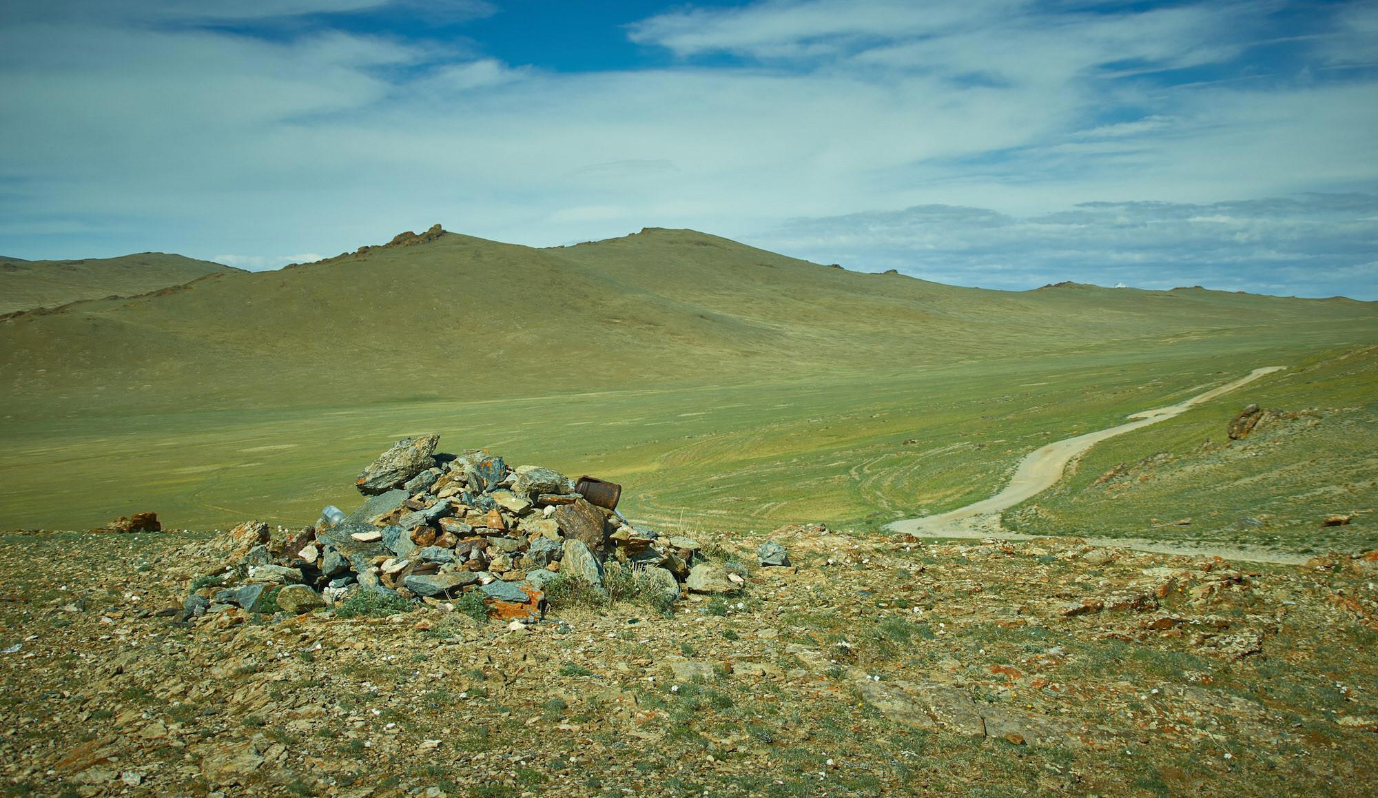 Въезжаем на территорию горных лугов и медленно поднимаемся на перевал Улаан даваа. Подъем здесь неспешный, нет диких серпантинов, но машина натужно гудит и быстро перегревается. Наш старичок требует регулярных остановок, и мы с напарницей решаем не томить его и самостоятельно поднимаемся наверх.