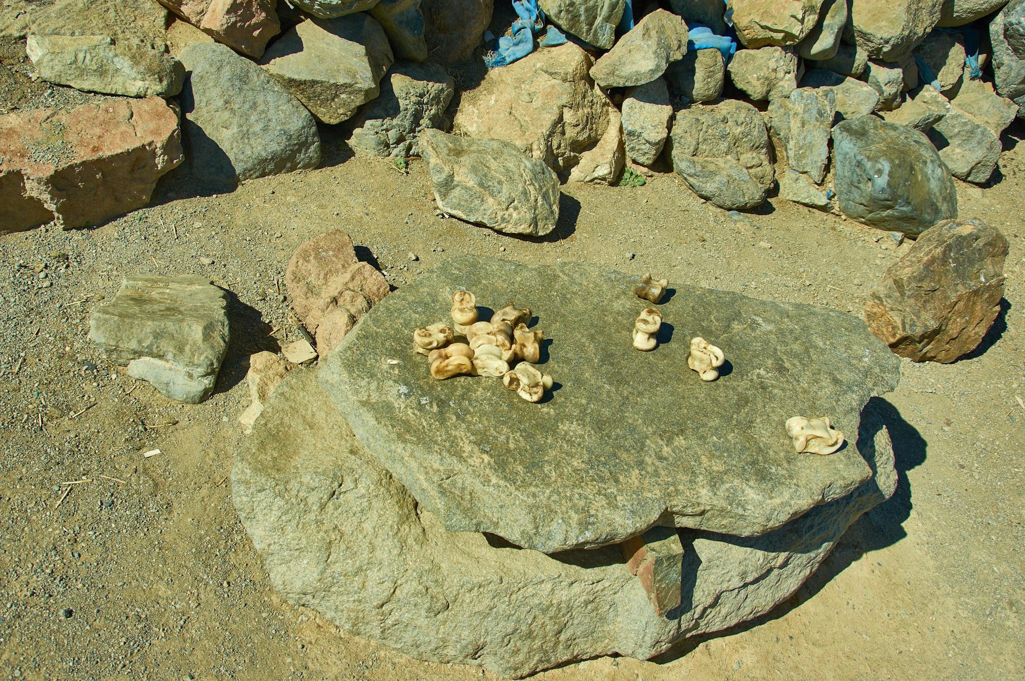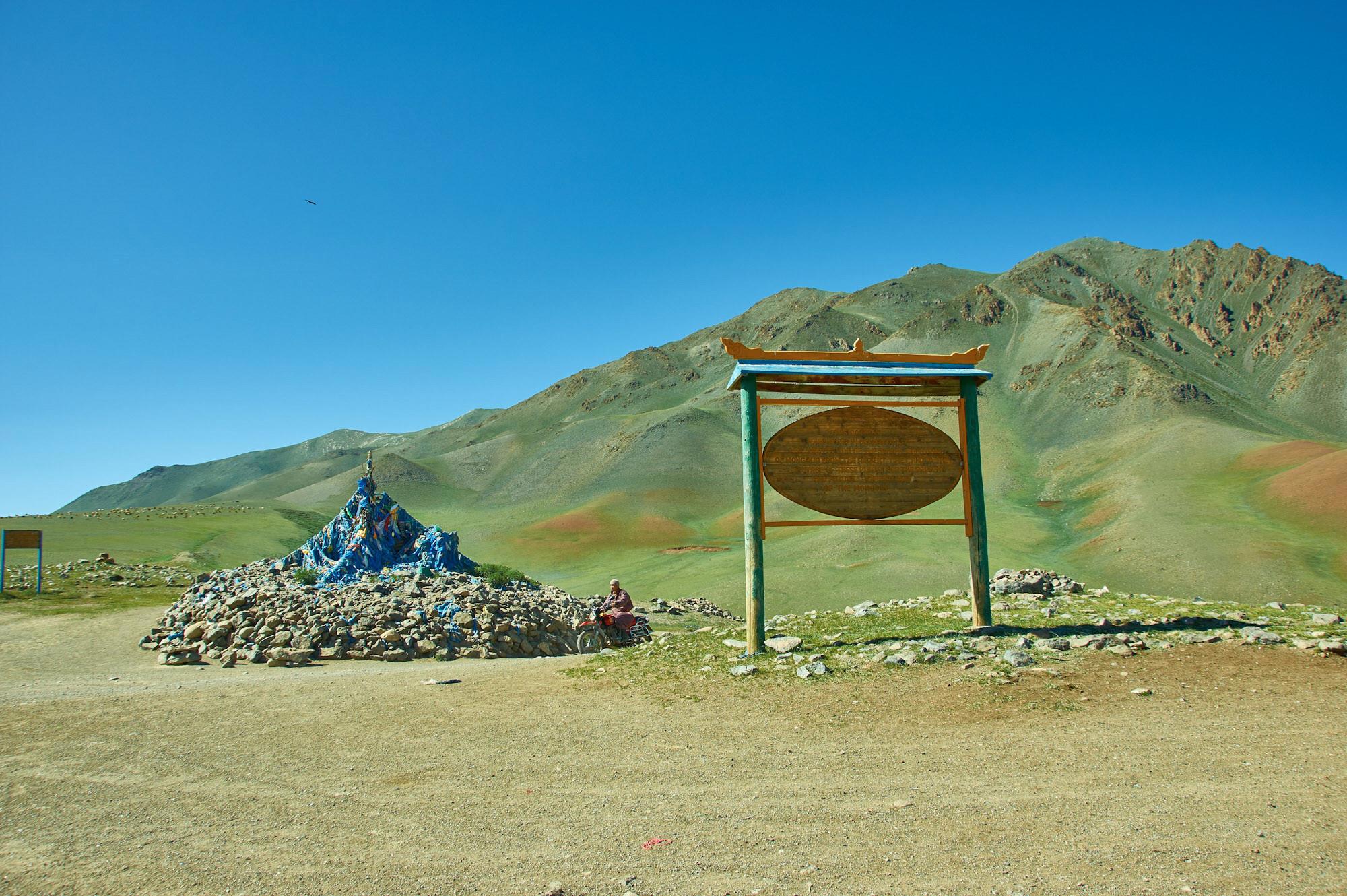 Традиционное Обо, какая-то вывеска и есть даже что-то на английском. Значит, туристы здесь не редкость. Пока я снимаю окрестности, мимо проезжает мотоциклист. Он попал на видео. С интересом наблюдаю, как молодой монгол, который попал на предыдущий кадр, кинул на камень кости, видимо, это некий вид гадания. Вот и сами кости, только как ими пользоваться мы не знаем.