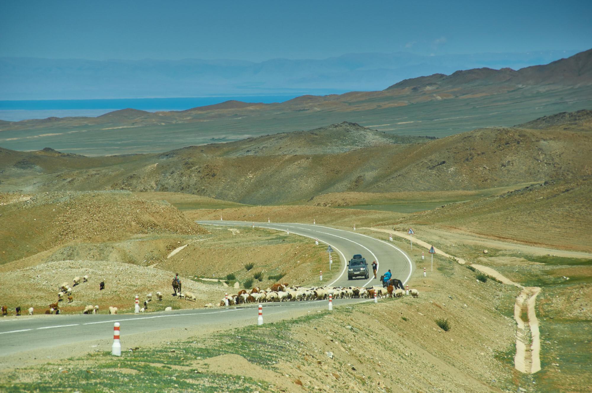 Как нам сказал позже Хунта, мы оказывается все клинические идиоты. Он же нам спецом показывал перед поездкой маршрут по южной части озера, там стоит самый настоящий мост. Что поделать, рассчитывали на громкое наименование трассы. Время не терпит, поэтому прощаемся с невольными попутчиками и двигаем дальше. После котловины дорога долго идет по ущелью. Местность местами напоминает Киргизию.