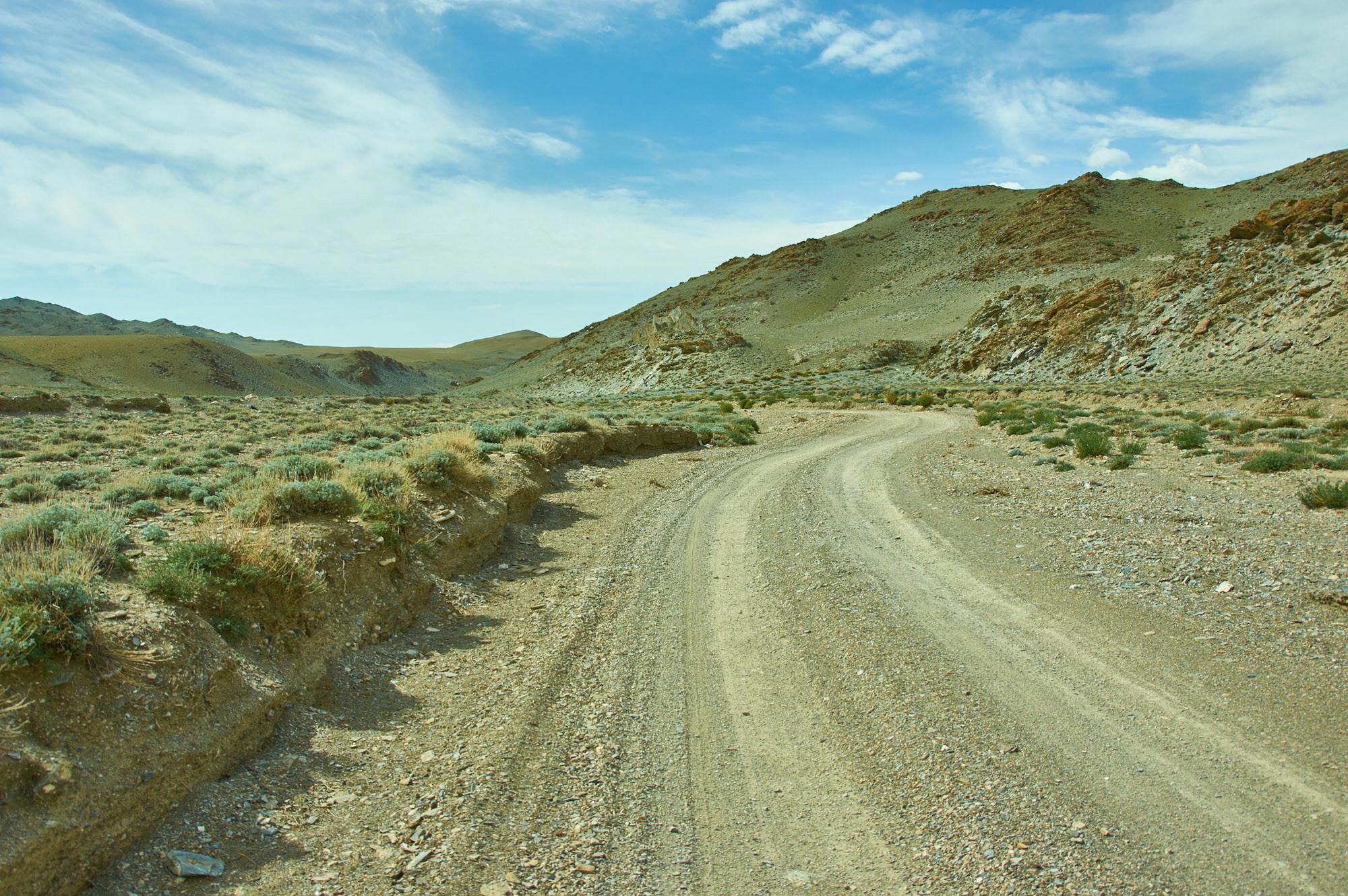Дорога была странной и почти необитаемой, хотя на карте она имела громкое обозначение Норд Роуд. Вперед пробирались какими-то невысокими ущельями и пустынными долинами. Только камень, щебень, времена полоса для движения здорово сужалась. Блин, как монголы тут протащили экскаватор?